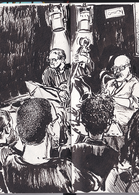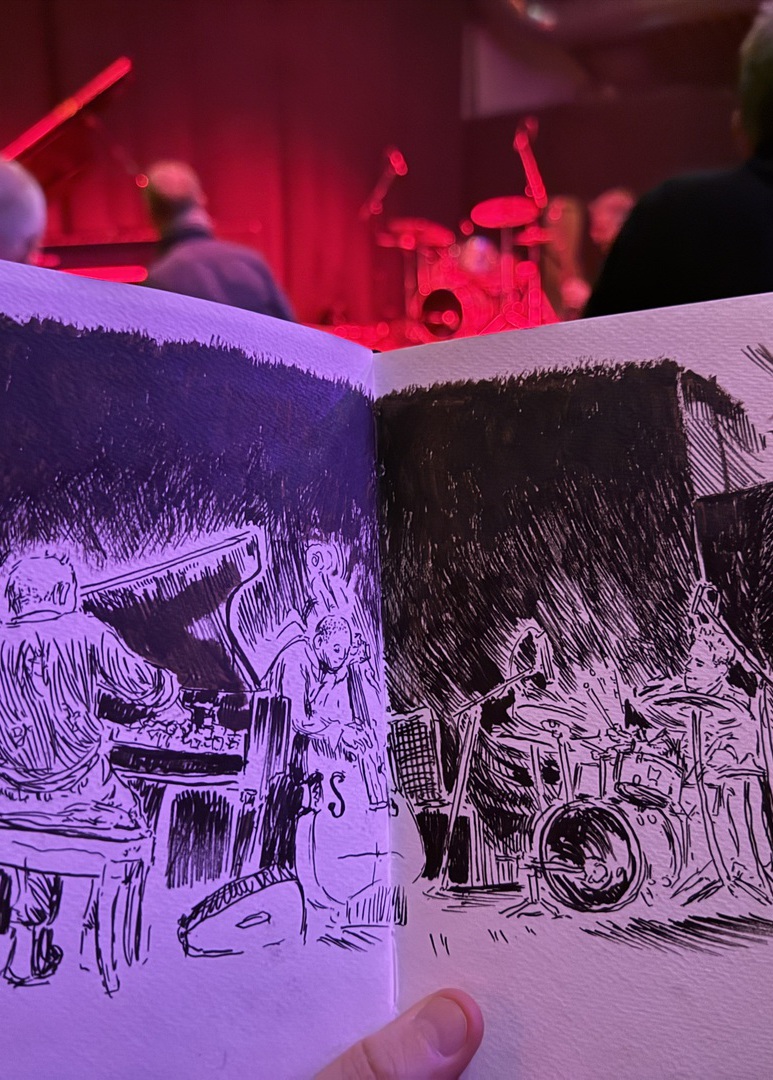 Ich trage jeweils eines meiner Skizzenbücher bei mir. Zum einen ist es ein wunderbares Training, zum Anderen kann ich schnell zur Hand meine Ideen notieren oder mit schnellem Strich